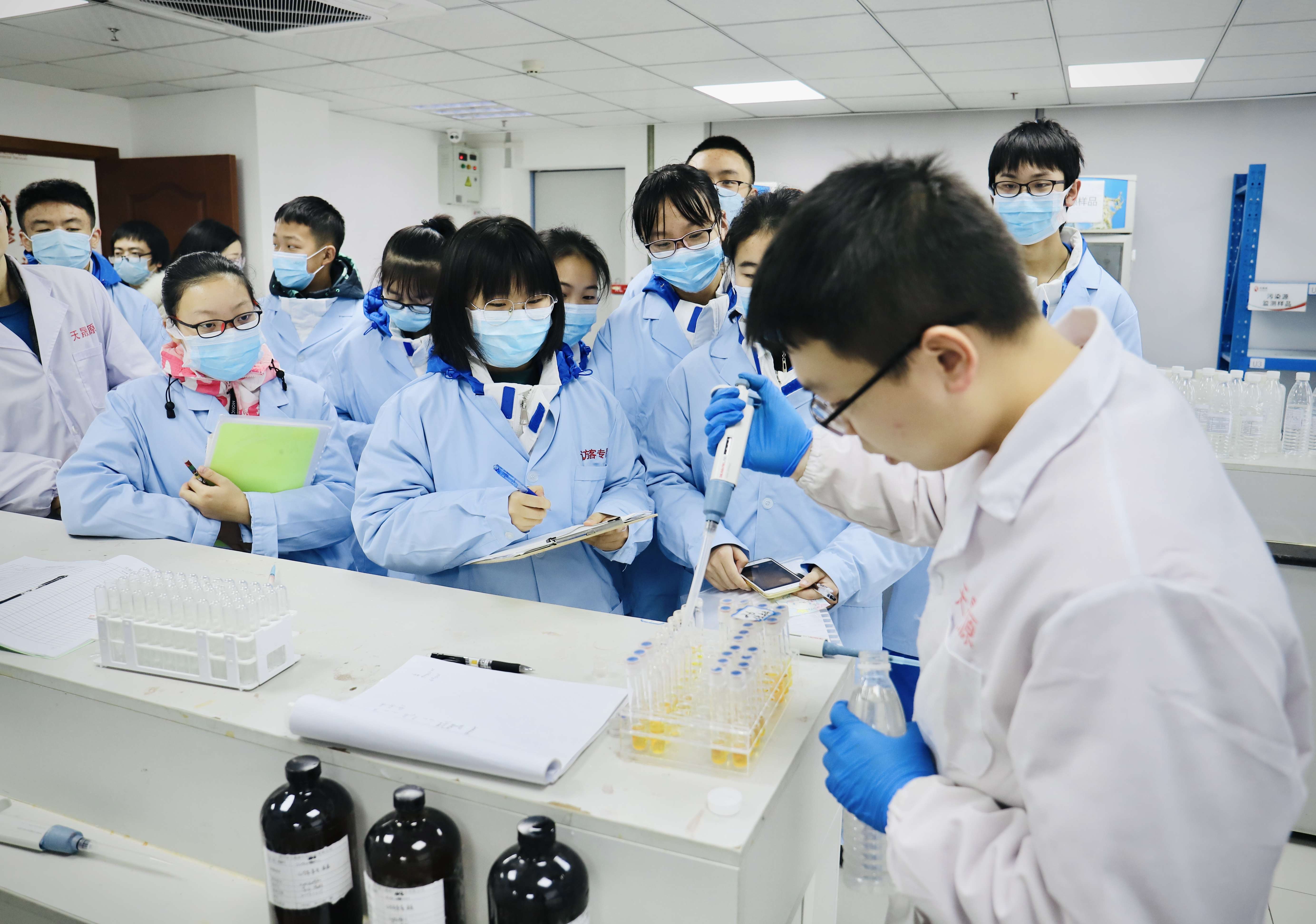 成都英才學(xué)校師生們?cè)谔礻稍喘h(huán)保實(shí)驗(yàn)室工程師張衛(wèi)威的帶領(lǐng)下參觀了實(shí)驗(yàn)室全貌,對(duì)樣品檢測(cè)全處理流程有了直觀的感受。隨后12名同學(xué)分為三組,分別觀看了高錳酸鹽指數(shù)、氨氮、溶解氧三項(xiàng)實(shí)驗(yàn)指標(biāo)的檢測(cè)全流程演示,并在實(shí)驗(yàn)室技術(shù)骨干的指導(dǎo)下現(xiàn)場(chǎng)進(jìn)行了實(shí)操,真切地體驗(yàn)了一瓶水體是如何成為嚴(yán)謹(jǐn)?shù)目茖W(xué)數(shù)據(jù)的過(guò)程。