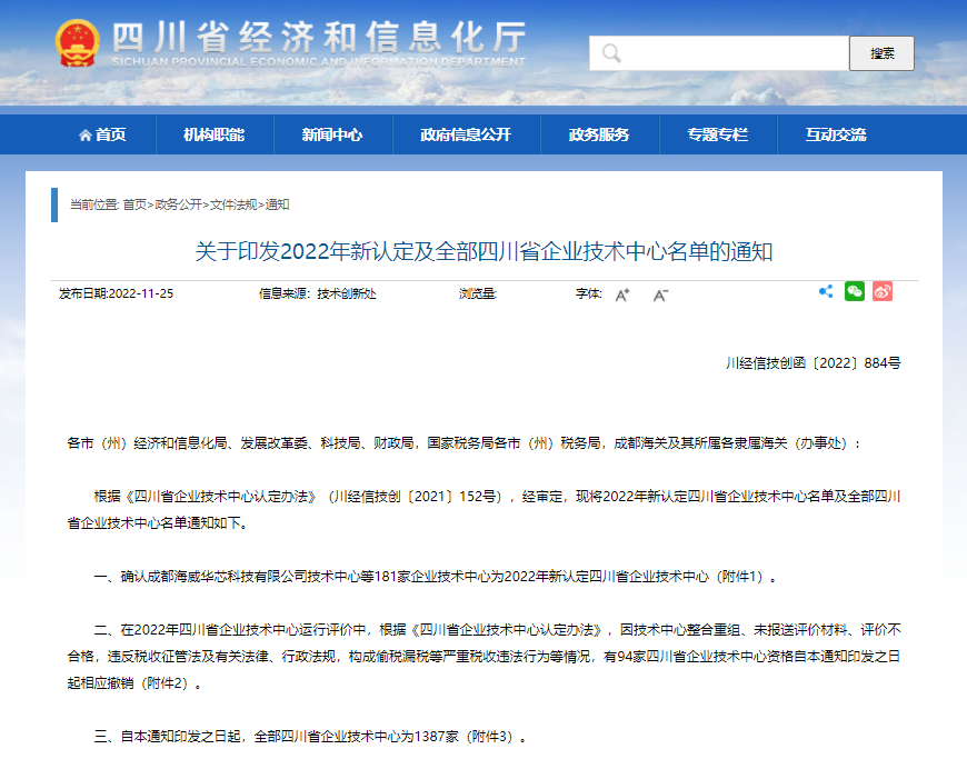 為深入貫徹落實創(chuàng)新驅(qū)動發(fā)展戰(zhàn)略,進一步強化企業(yè)創(chuàng)新主體地位,提升企業(yè)核心競爭力,近日,由省經(jīng)信廳、省發(fā)展改革委、科技廳、財政廳、省稅務局、成都海關等6部門聯(lián)合認定了“2022年度四川省企業(yè)技術(shù)中心”。四川省天晟源環(huán)保股份有限公司(簡稱“天晟源環(huán)?!?/span>)順利通過評審,被正式認定為省級企業(yè)技術(shù)中心。這是繼今年成功申報國家高新技術(shù)企業(yè)、四川省“專精特新”中小企業(yè)后,獲得的又一重量級技術(shù)平臺認定。