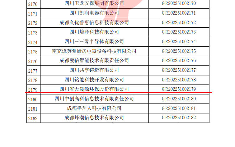 近日,由全國高新技術(shù)企業(yè)認(rèn)定管理工作領(lǐng)導(dǎo)小組辦公室發(fā)布關(guān)于四川省2022年度第一批備案高新技術(shù)企業(yè)名單,四川省天晟源環(huán)保股份有限公司(下稱“天晟源環(huán)?!被颉肮尽保┪涣衅渲?,成功取得“國家高新技術(shù)企業(yè)”認(rèn)定。