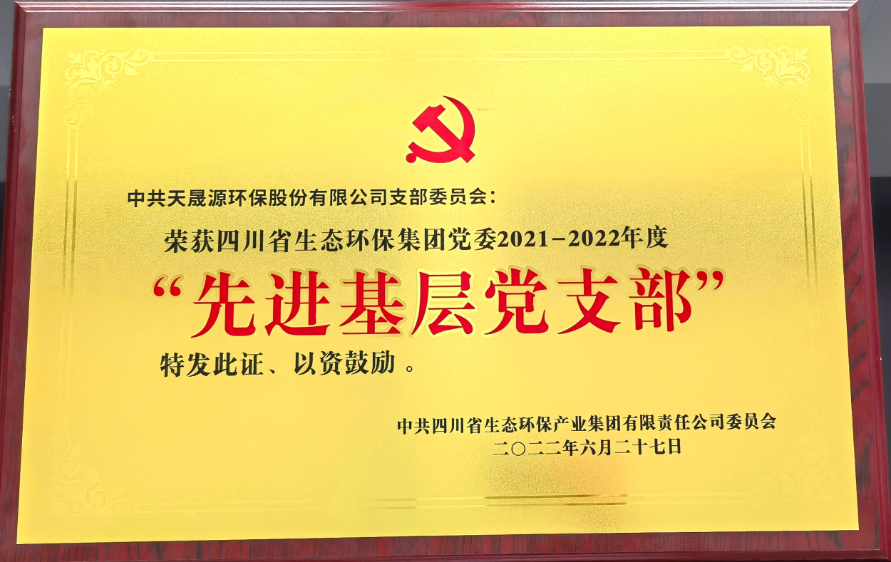 天晟源環(huán)保黨支部榮獲“先進基層黨支部”稱號