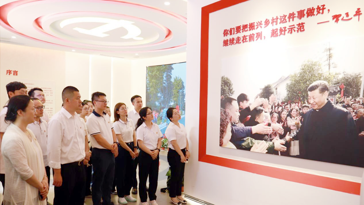 公司黨員、干部沿著總書記的足跡來到郫都區(qū)戰(zhàn)旗村,先后到戰(zhàn)旗村“戰(zhàn)旗·初心館”、產(chǎn)業(yè)展示區(qū)等地,通過實地參觀詳細了解當?shù)剜l(xiāng)村振興情況,進一步深刻領(lǐng)悟習近平總書記對四川工作系列重要指示精神。