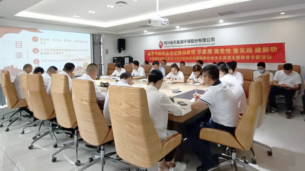 參觀學習后,天晟源環(huán)保黨支部在公司第一會議室召開學習貫徹習近平新時代中國特色社會主義思想主題教育專題學習會。在會上,新一屆支部委員會向黨員、干部講解了本次主題教育的由來,強調(diào)了這次學習的重要性和緊迫性。同時,還宣讀了上級黨委的文件,明確了學習的目標和要求。為了確保學習的效果,支部委員會組織支部黨員重點學習了“學思想、強黨性、重實踐、建新功”的內(nèi)在含義,專題研讀了《習近平新時代中國特色社會主義思想專題摘編》。在專題學習會上大家一致認為,習近平生態(tài)文明思想是習近平新時代中國特色社會主義思想的重要組成部分,是生態(tài)文明建設(shè)的指南針。