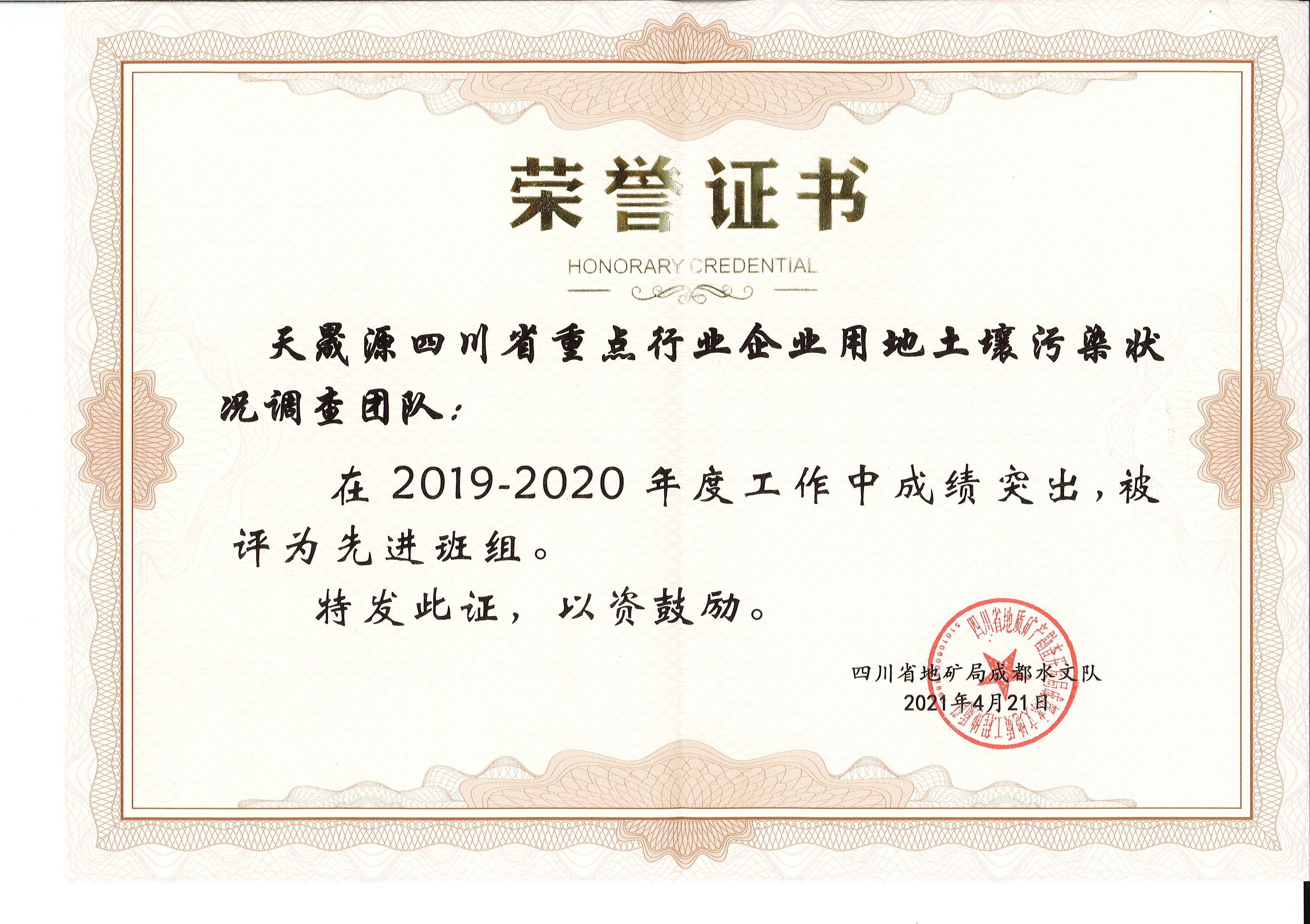 ?2021年4月25日,四川省地礦局成都水文隊(duì)印發(fā)了《關(guān)于表彰2019~2020年度先進(jìn)集體(班組)和先進(jìn)生產(chǎn)(工作)者暨最美川勘人的決定》(川地礦成水發(fā)〔2021〕16號),文件對成都水文隊(duì)2019-2020年度涌現(xiàn)出的先進(jìn)集體(班組)和個人進(jìn)行了表彰,四川省地質(zhì)工程勘察院環(huán)境工程中心(天晟源)喜獲“先進(jìn)集體”榮譽(yù),天晟源環(huán)保四川省重點(diǎn)行業(yè)企業(yè)用地土壤污染狀況調(diào)查團(tuán)隊(duì)斬獲了“先進(jìn)班組”稱號!