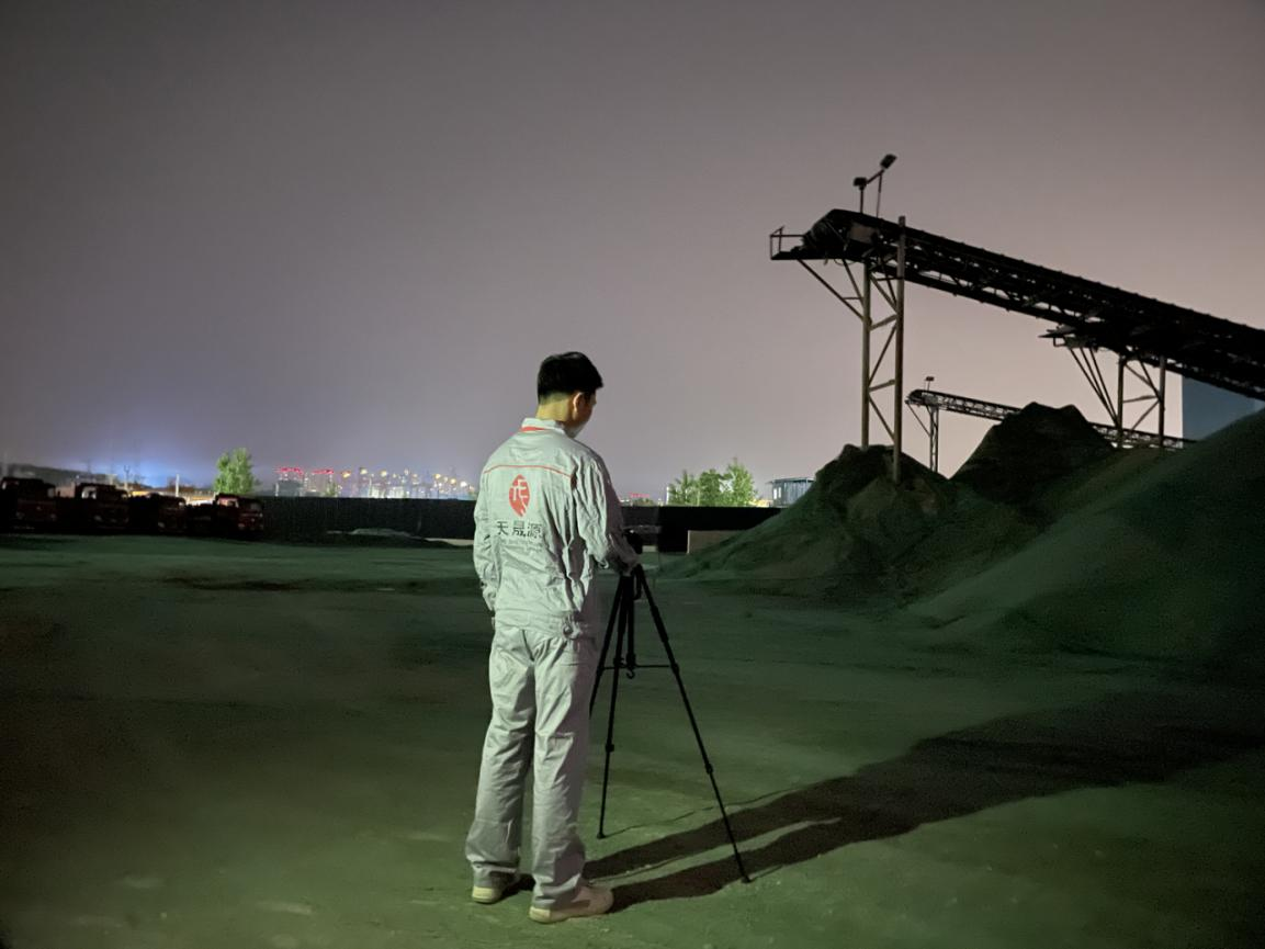 (上圖:5月1日傍晚,監(jiān)測(cè)人員正在進(jìn)行噪聲監(jiān)測(cè)工作)