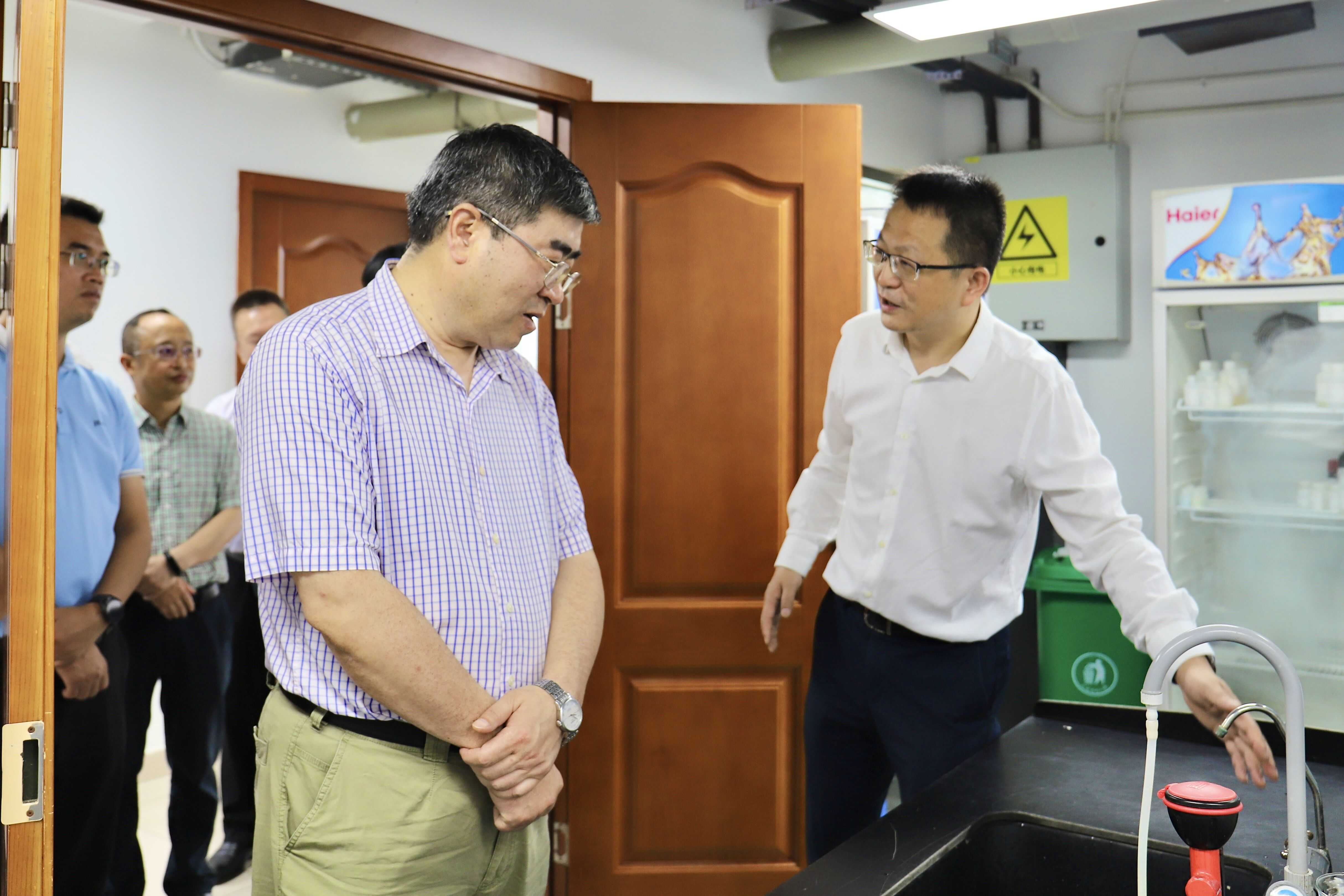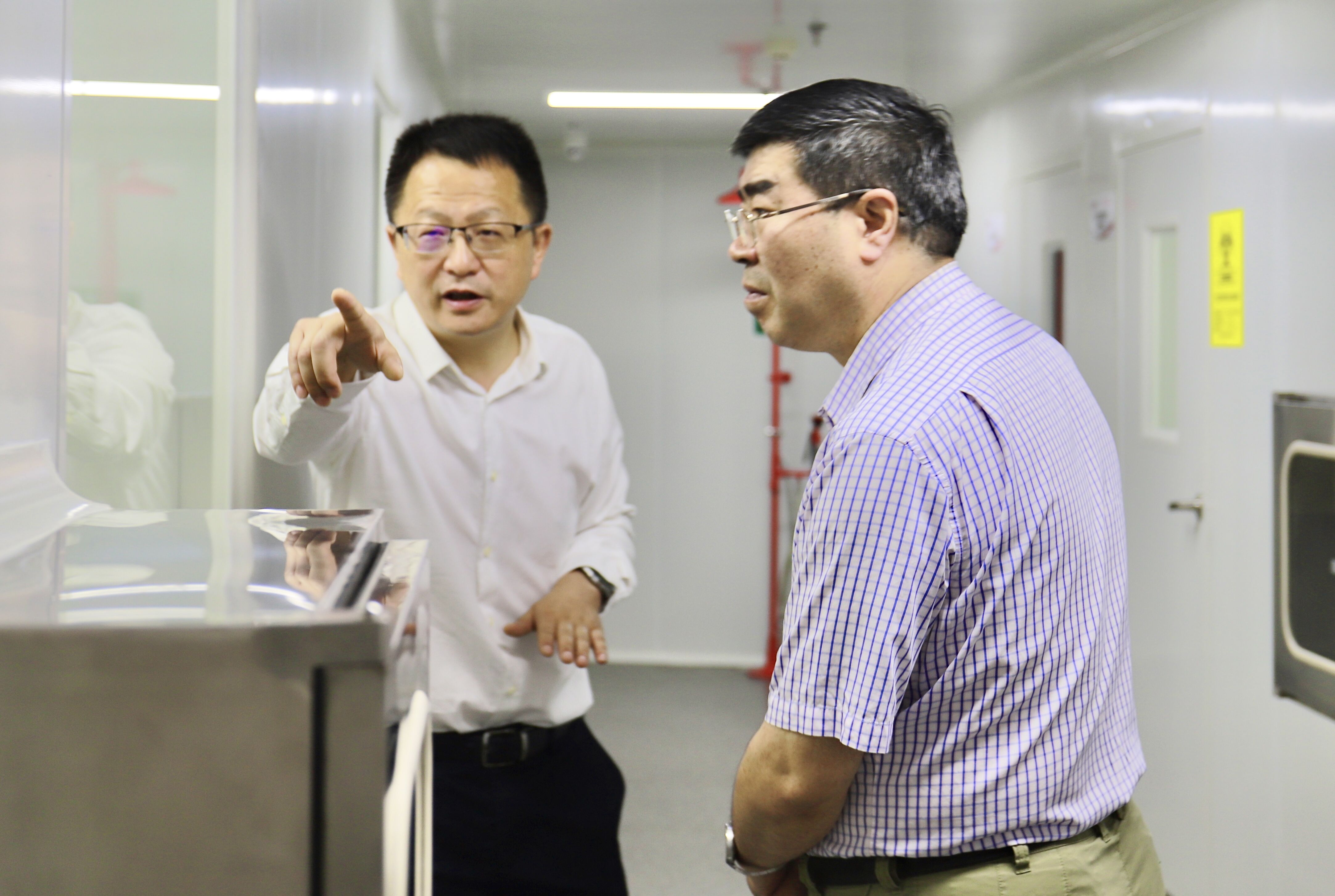 (劉健仔細(xì)查看實(shí)驗(yàn)室生產(chǎn)情況)