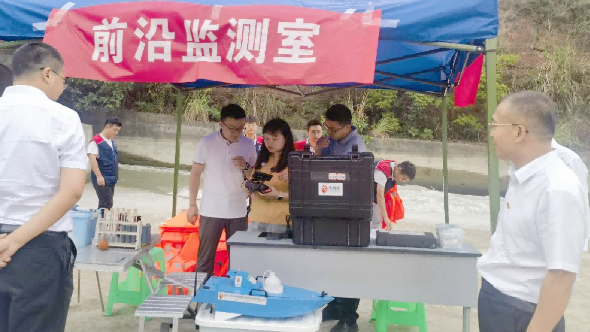 演練結(jié)束后,楊濤副局長(zhǎng)等相關(guān)領(lǐng)導(dǎo)參觀了現(xiàn)場(chǎng)前沿監(jiān)測(cè)室,詳細(xì)了解了天晟源環(huán)保自主研發(fā)的無(wú)人采樣船等設(shè)備,高度贊揚(yáng)了天晟源環(huán)保在此次應(yīng)急演練中的組織、策劃水平和現(xiàn)場(chǎng)專業(yè)技術(shù)人員的技術(shù)水平。