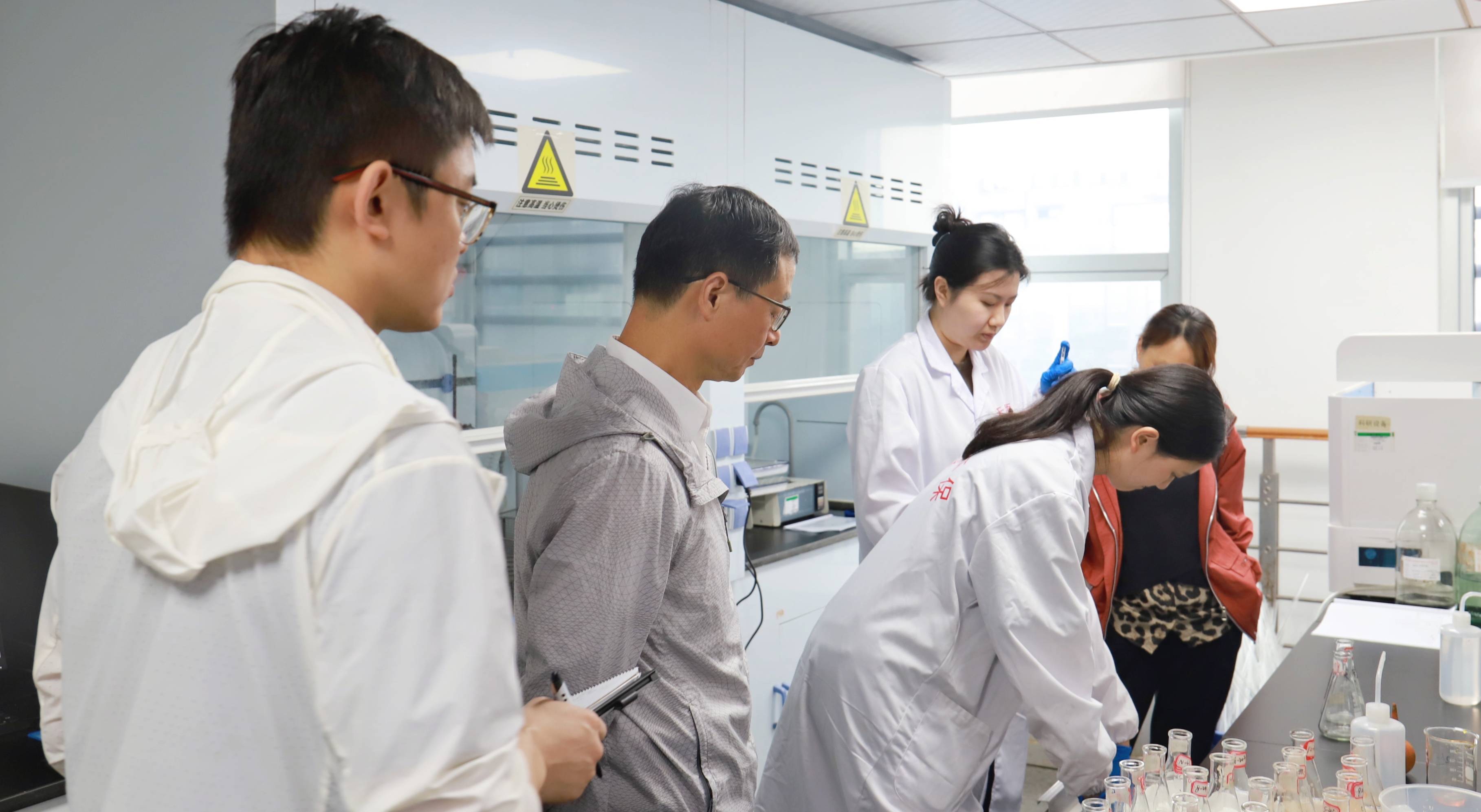 謝建華主任一行參觀了天晟源環(huán)保實(shí)驗(yàn)室,對(duì)實(shí)驗(yàn)室的設(shè)施、設(shè)備和管理給予了高度評(píng)價(jià)。在交流座談會(huì)上,張恒總經(jīng)理從業(yè)務(wù)范圍、資質(zhì)情況、人員設(shè)備以及項(xiàng)目承接經(jīng)驗(yàn)等方面介紹了公司基本情況,并從采樣,制備,分析三方面對(duì)承接的三普項(xiàng)目進(jìn)行了詳細(xì)的進(jìn)度匯報(bào)。
